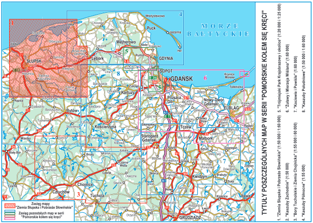 Jedna z ośmiu map w serii: "Pomorskie kołem się kręci". Na mapach umieszczono szlaki rowerowe, turystyki pieszej PTTK, Sopockie Szlaki Spacerowe, Nordic Walking, konne oraz kajakowe.